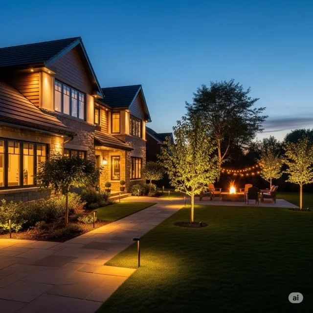 Enhance your home's beauty and security after sunset. We create stunning outdoor lighting schemes that highlight your architecture, illuminate pathways, and create a warm, inviting ambiance.